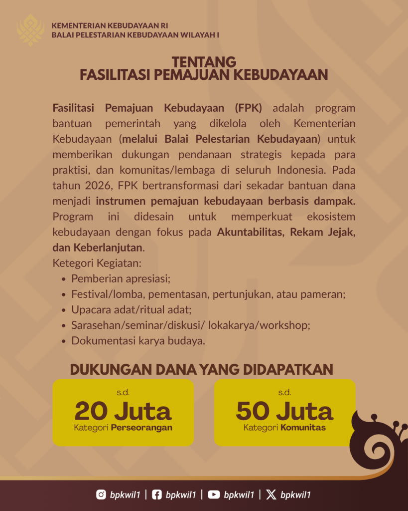 Balai Pelestarian Kebudayaan Wilayah I Tahun 2026 telah resmi dibuka.